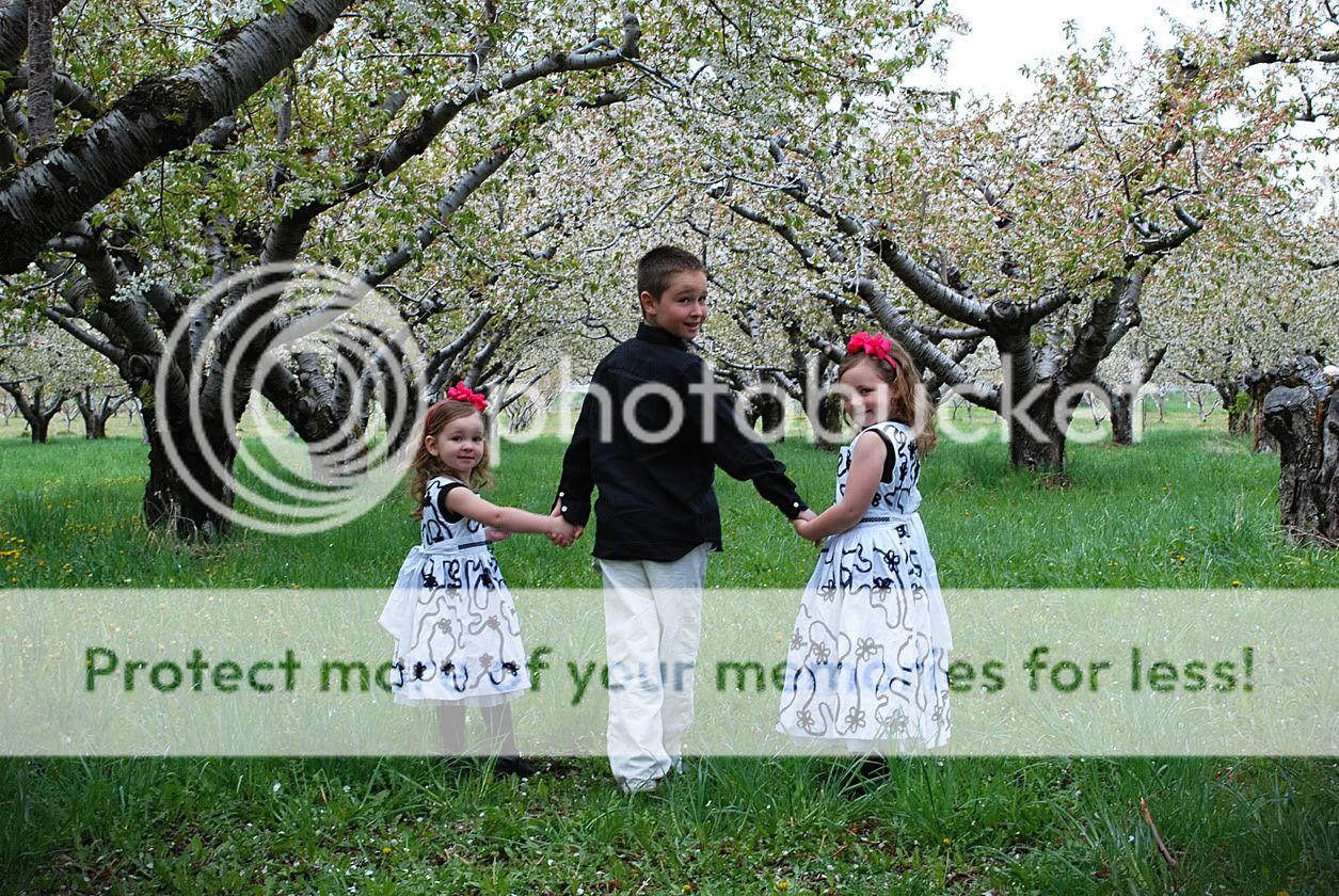 dang. why don't the orchards look like here in michigan? well, they don't yet...i'm crossing my fingers. anyway, just wanted to say that i think these are super cute...the kids AND the pictures! my faves are the closeup of the little boy and the one of the three of them walking and looking behind them.